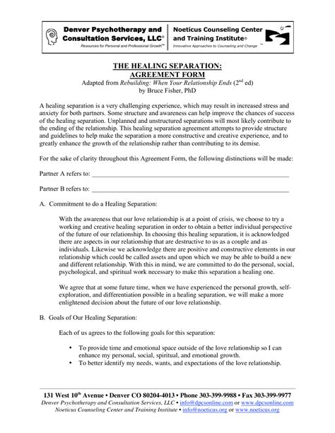 Online PDF The Healing Separation Agreement Form Doc Gutenberg